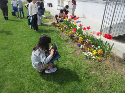 あたたくなると植物や動物がどう変わるか校庭を歩いて観察しました。ぽかぽか陽気の中春の生き物の様子をクロムブックで記録していきました。