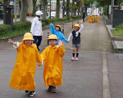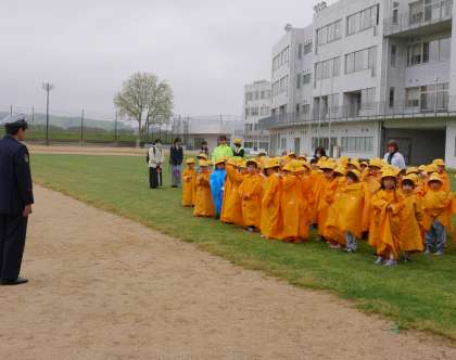 1年生の交通安全教室を実施しました。実際に小学校付近の歩道を歩きながら、警察の方や地域の方に、左右の確認や歩道の歩き方等を教えてもらいました。交通ルールを守って、正しく歩くことができていました。