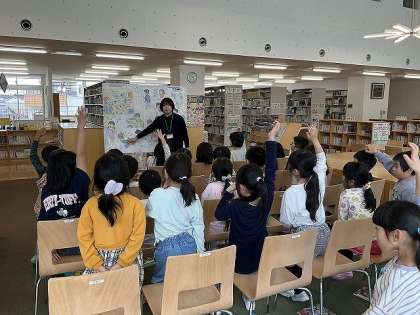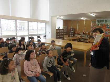 学級ごとに「図書オリエンテーション」を行い、図書室でのマナーや本の正しい扱い方等を学びました。その後、司書の先生による読み聞かせや本クイズ等を思いっきり楽しんだ2年生。ますます、図書室を利用する回数が増えそうです。