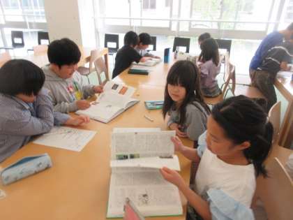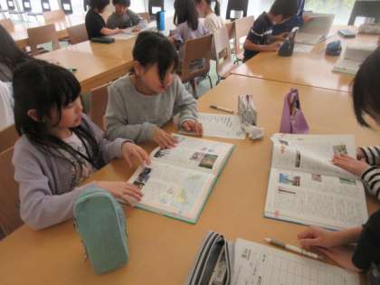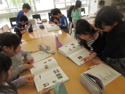 今年も図書室で本を借りることが楽しみな4年生です。今日は司書の先生から、図書室で百科事典の使い方を教わりました。