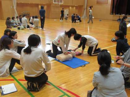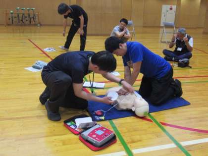 プール開きを来週に控え、指導員の方々をお招きして救命講習会が行われました。参加した本校職員とPTAの方々で、心肺蘇生法、AEDの使い方などを学びました。子供たちの水泳学習、夏季休業中のプール開放を安全に楽しく行うことができるようにと気持ちをひきしめて講習に臨みました。