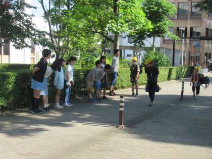 芝園小学校、芝園中学校、中部高校の児童生徒たちが、けやき通りに並んで、あいさつ運動を行いました。元気なあいさつの声に、道を行く人たちも笑顔で応えてくれます。中学生、高校生のお兄さんお姉さんたちと、さわやかな一日の始まりを共有することができました。