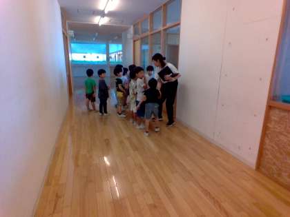 初めてのプール開放もあり、1年生は、日時やプール使用時の約束を教室で確認し、地域開放玄関からプールまでの行き方を実際に行って見てきました。
