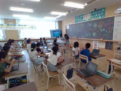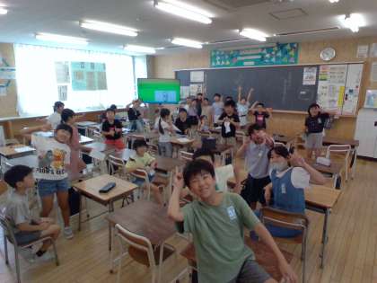 黒板いっぱいにプログラムを書いたり、絵を描いたりと、にぎやかな雰囲気の中、仲良く集会を楽しんでいました。