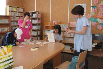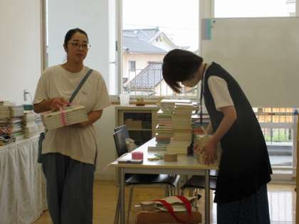 夏休み初日の今日、図書室では図書館ボランティアの方々が子供たちのためラベル貼りや廃棄本の整理等、懸命にお仕事をしてくださっています。