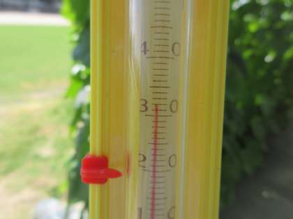 8月9日(金)13:00現在、グラウンドの温度計は、32度を差しています。