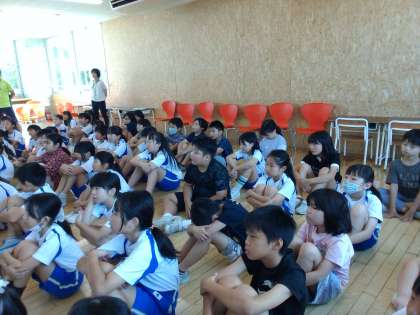 話を聞くときの4年生の目は、きらきらと輝いていました。上学年としてのやる気に満ち溢れた4年生の子どもたちでした。
