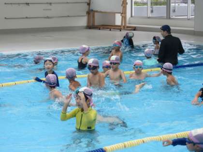 昨年度は、まだ水を怖がっている子供や泳力に自信のない子供が多くいましたが、本年度の学習では、恐怖心を克服し、水に慣れて泳力を伸ばそうと努力している姿がたくさん見られ、飛躍的に泳力が伸びました。どの子供もプール開きの際に立てた「自分にとってちょっと難しい目標(目当て)」を達成し、達成感を味わい、学習を終えました。