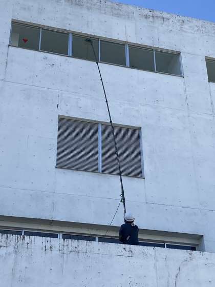 釣り竿のような長さの用具を使い、高く離れたところにある窓を、隅々まできれいにしていただきました。
