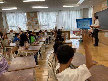 初めは、身近なお金に関する楽しいクイズからスタートし、野菜の値段が季節によって変わることや、農家の方、市場の方、お店の方がそれぞれ値段を決めていくことなどについて学びました。テレビで人気と紹介されたりして欲しい人が増えると値段が上がったり、たくさん取れて野菜がたくさんあると値段が下がることなどを、生活とつなげて、クイズを交えて教わりました。