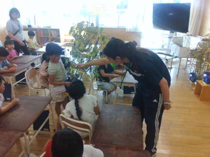 夏休み中、自宅で育てたアサガオの成長の様子や、飼育を通して気付いたこと、変化をみんなで聴き合いました。自分のアサガオとの共通点や違いがあることに気付いたようでした。
