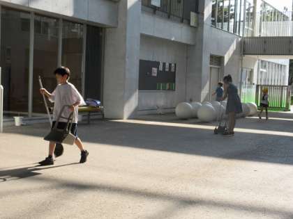 朝のパサージュには、美しい学校環境になるようにと、自ら清掃活動に取り組む頼もしい子どもたちが毎日活動しています。