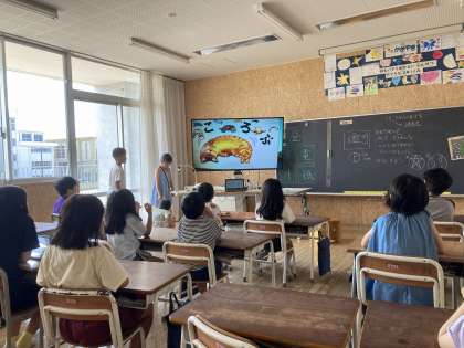 2学期に入って初めての芝園タイムでは、読み聞かせをしました。実物投影機に写し、クラスのみんなが楽しくなるような本を係の子供たちが読んでくれました。
