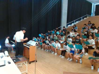 ソプラノパートは、表現の舞台で高音の美しい響きを目指して練習しています。