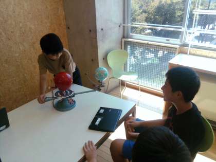 9月6日(金)、理科では「月の形と太陽」の学習をしています。「日によって、月の形が変わるのはどうしてか」について、月、太陽、地球の位置関係を確かめています。