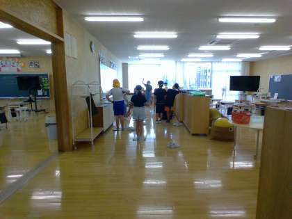 その後、班長を先頭に、清掃場所へ移動し、場所と仕事の確認をしました。