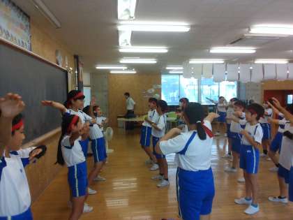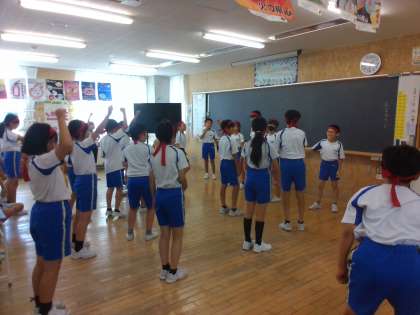 6年生が作ってくれた動画を参考にしながら、各団に分かれて応援練習を行いました。団長、副団長、応援リーダーが中心となって、自分たちで練習を進めています。