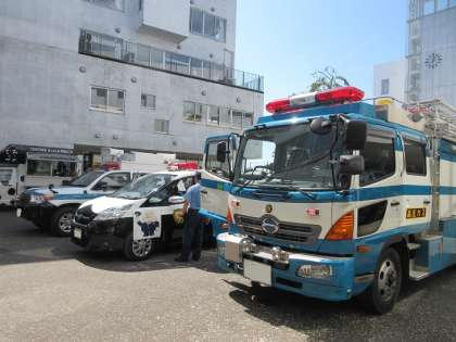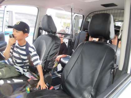 警察車両やレスキュー車を身近に感じることができる体験コーナーです。