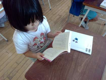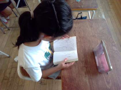 図書室で借りた本を、集中して読んでいます。