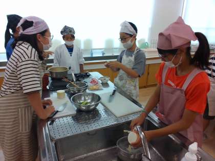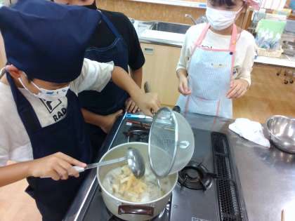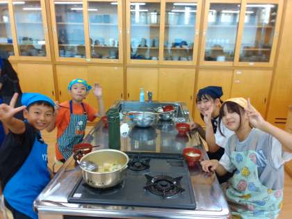 家庭科の学習でお味噌汁づくりをしました。準備から片付けまで班の仲間と協力して進めることができました。おいしくできた味噌汁に満足です。
