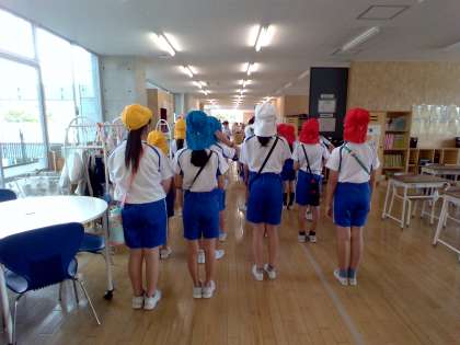 運動できる準備を整えて、グラウンドに向けて出発します。