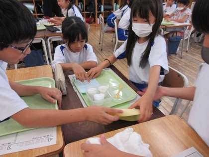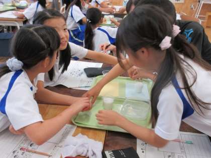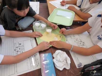 自立の鐘 「思わず!」 公開日 2024/09/20 更新日 2024/09/20 今日の芝園小学校 3年生が塩、砂糖、ホウ酸の3種類の白い粉を弁別していました。「これは塩かな?」「結晶になってるから・・・」「ん?!」 思わず立ち上がって、身を乗り出して、手を差し出して確かめていこうとしています。この「思わず」が、子どもの主体性が発揮されている姿なのだと思います。本当に知りたい、分かりたいという子どもの意欲が高まっています。