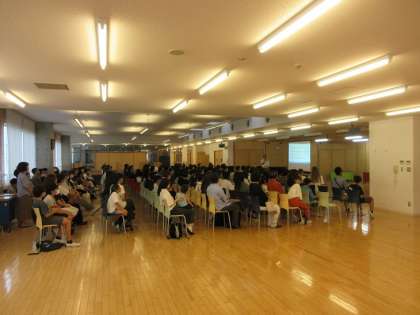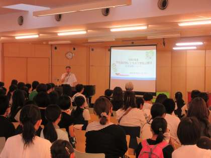 芝園中学校では授業公開が終わり、ランチルームで教育課程や学校生活についての説明が行われています。