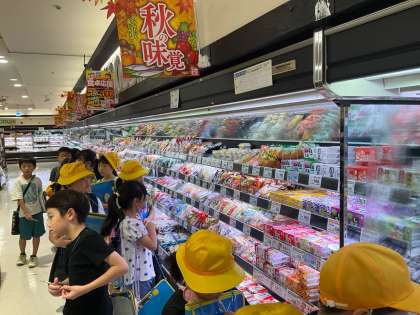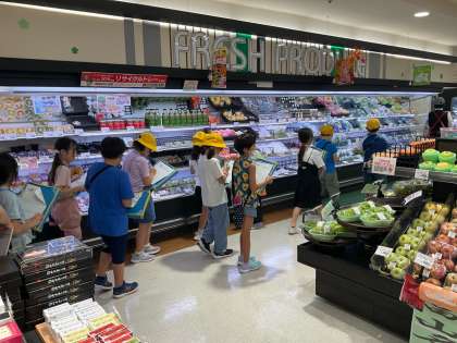 3年生は社会科の学習で、スーパーマーケットではたらく人の工夫について調べたり考えたりしています。アルビスエスタ店に見学をさせてもらいに行きました。店内で働く方のお仕事の様子や陳列の様子からたくさん工夫を見つけました。いろいろな仕事がありお客さんたちのためにお店の方がたくさん工夫してくださっていることに気づきました。