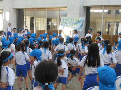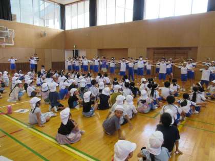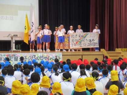 結団式では、各団のスローガンが発表されました。団長、応援団長の熱い思いが全校に伝わり、さっそく行われた応援練習では、どの団からも力あふれる声が響いてきました。