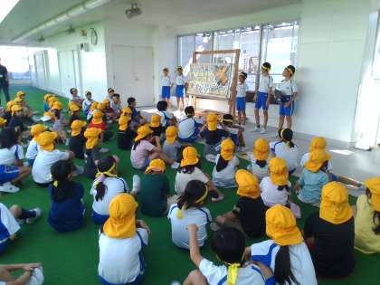 団リーダーが先頭に立ち、下級生に練習の心構えや姿勢、スローガン等を教えていました。