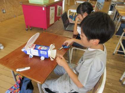 様子を見ていると・・・・・・走らせては、作り、また走らせる。よいよいものを作り上げようと取り組む子どもの姿に出会いました。まさに、自らの意思で学ぶ子どもの姿です。