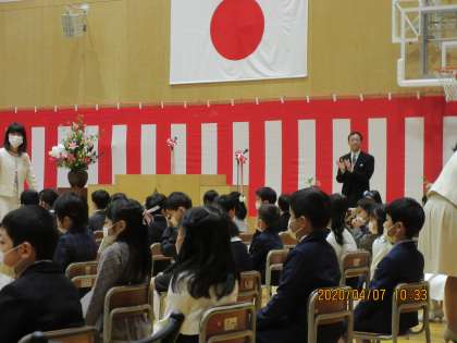入学式では、校長先生からの「元気な返事、笑顔であいさつをしましょう」の言葉に、「はい」「ありがとうございます」と張り切って反応する微笑ましい姿が見られました。