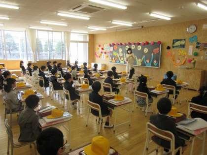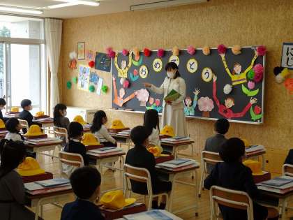 各教室では、担任の先生の話をよく聞いて、返事をしたり質問に答えたりしました。真剣な表情、きらきら輝く笑顔から素敵な出会いに期待を感じました。