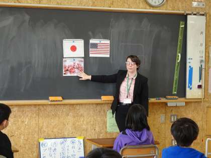 外国語科の時間に、新しいALTが英語で自己紹介をされました。子供たちはALTの言っていることを理解しようと一生懸命聞いていました。