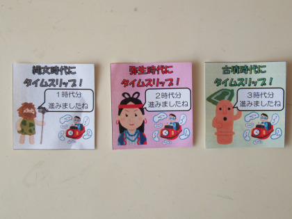 タイムスリップ特典として、その時代の偉人のシールをはったり、その時代にあった出来事を書いたりすることができます。