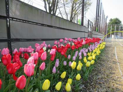 さわやかな春の陽気が続き、校庭のチューリップが満開です。