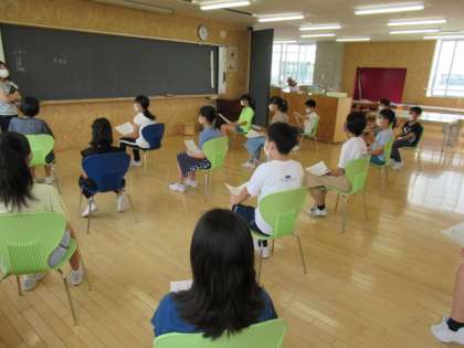 児童会スローガンを決めるために、どんな学校にしたいか意見を出し合いました。
