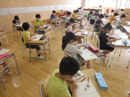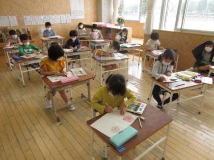 図画工作科の時間に、色や形をくふうして、自分だけのたんぽぽをかきました。