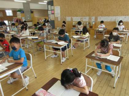 たんぽぽのちえとそのわけをきょうか書から見つけました。きょうか書をよく見て、文字がずれたりぬけたりしないように、プリントにていねいに書いていました。