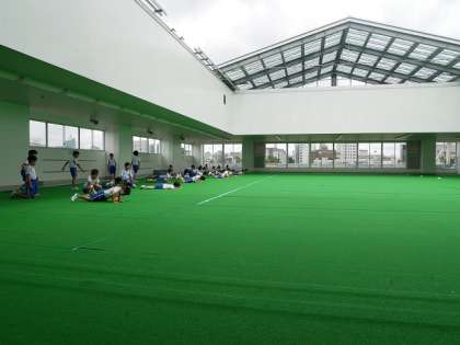 プール室で上の窓を開いて運動をしました。けんけんをしたり、様々な姿勢から走り出したりして身体を動かしました。競争もしながら楽しく身体を動かす子供たちです。