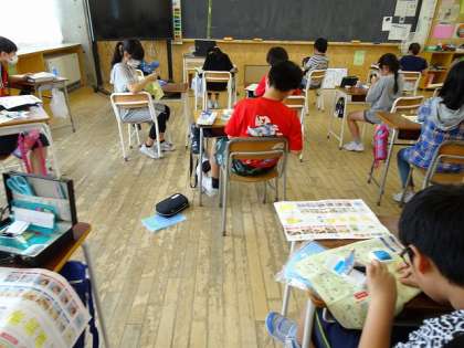家庭科の学習の様子です。初めての裁縫に戸惑いながら、玉結び、玉どめを繰り返し練習しました。授業が終わった後、「家で練習したい!!」と口々に言うなど、関心を高めた子供たちでした。