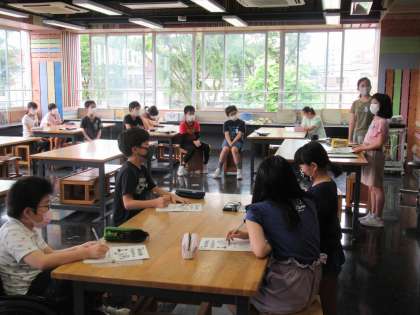 これまで6年生だけで考えてきた、活動のめあてや内容を5年生に伝え、意見を出し合いました。最高学年として、5年生に手本を見せ、一緒によりよい学校をつくっていきたいという、子供たちの強い思いを感じました。