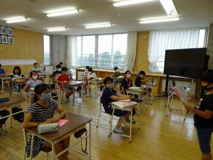 国語科の学習では、インタビューのやりとりの「記録者」による報告会を行いました。子供たちは短い言葉で分かりやすく伝えることを心がけて取り組みました。