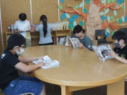 7月になり、昼休憩が復活しました。子供たちは大喜びです。久々に、ゆっくりと友達同士で語り合える時間となりました。多目的教室では、数人で短縄跳びをしたり、じゃんけんをして遊んだりしていました。また、図書室でじっくりと読書をする姿も見られました。