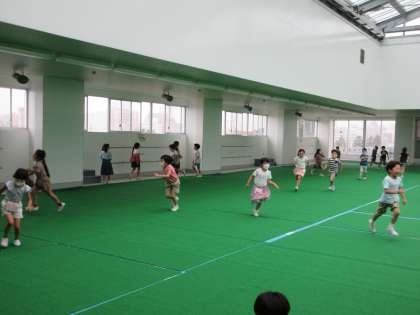 初めて、プール室で遊べる日だったので、プール室でおにごっこなどをして遊びました。