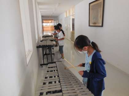 「リボンのおどり」の学習では、鉄琴、木琴、打楽器、リコーダー等でグループ合奏を行います。今日は、パート練習をしました。久々の楽器演奏に、子供たちはとても嬉しそうでした。