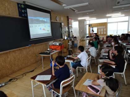 教室に戻ってから、ハードル走のお手本の動画と、自分の走る様子を見比べながら走り方を確かめました。