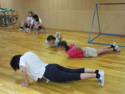 チャレンジ陸上校内記録会に向けて、朝のトレーニングを始めました。今日は雨でしたが、体育館やプール室で気持ちのよい汗を流しました。