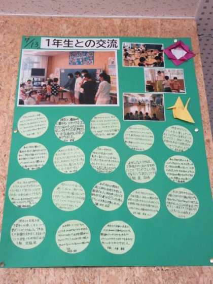 7月から始まった1年生との交流のふり返りを行いました。自分に身についたと思う力を一人一人がふり返り、満足感や達成感を得ている様子でした。ふり返りは、掲示したり冊子にしたりして、いつでも見返すことができるようにしています。
