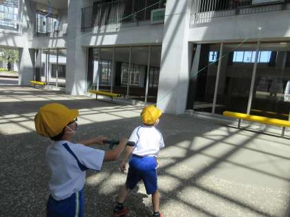 体育科の時間に、ジェットボトルを使って投げる練習をしました。友達と協力して、的に向けて思いっきり投げる練習をしました。
